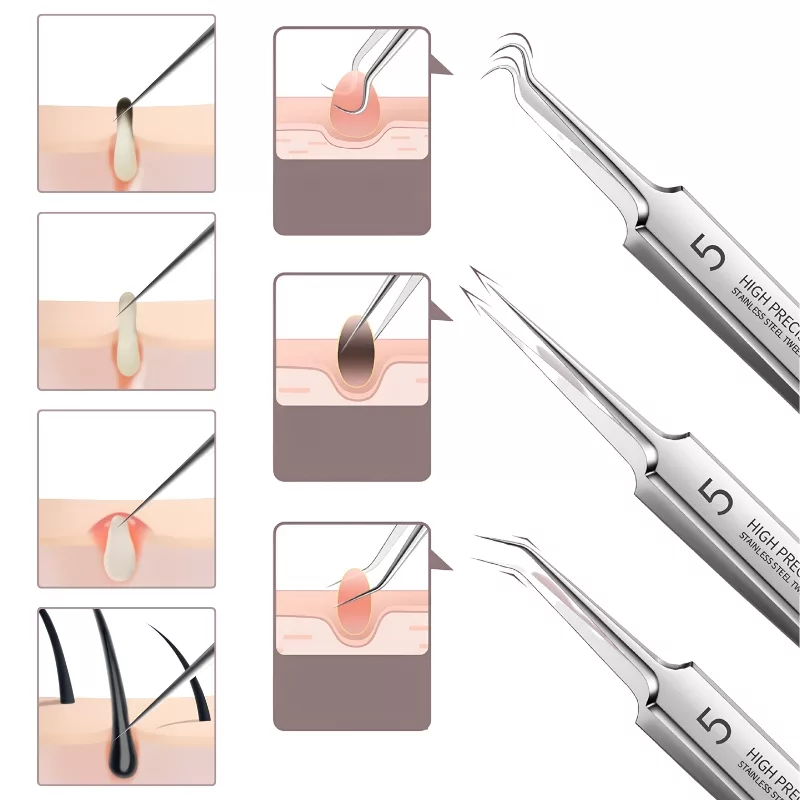 Our blackhead tweezers reach deep to clear impurities and improve skin complexion. They help prevent future breakouts by keeping pores free of debris. This kit is a smart addition to any skincare routine.